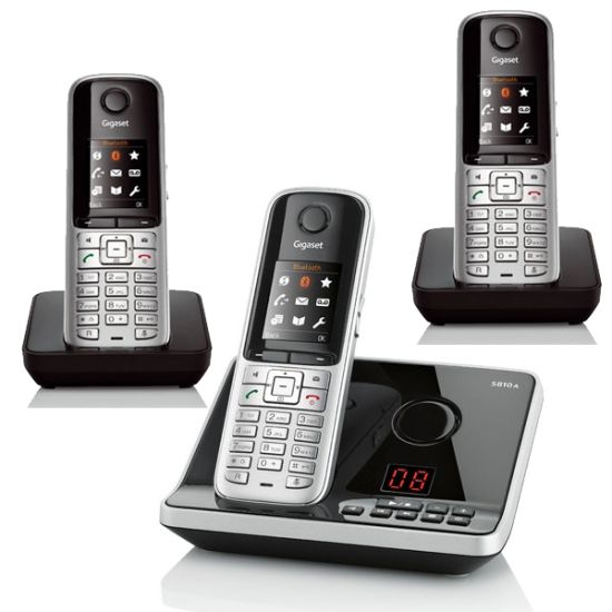 Téléphone sans-fil Gigaset S810A Trio : 3 combinés, répondeur, grand écran couleurs, mains libres, grand répertoire, son HSP, bluetooth