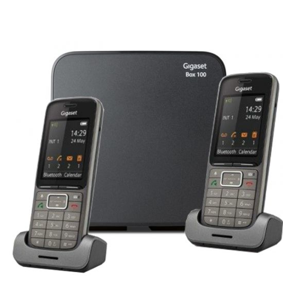 Solution DECT évolutive, constituée de deux téléphones sans fil professionnel Gigaset, SL750H Pro, au design fin et aux performances professionnelles, idéaux pour communiquer confortablement dans l'entreprise, et leur base DECT dédiée. Les combinés DECT sont équipés d'une connexion Bluetooth, d'un écran couleur, du son HD, et notamment d'un répertoire 500 contacts.
