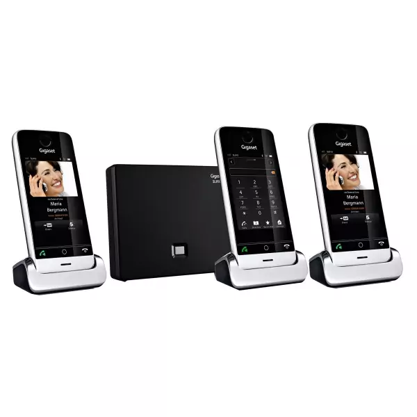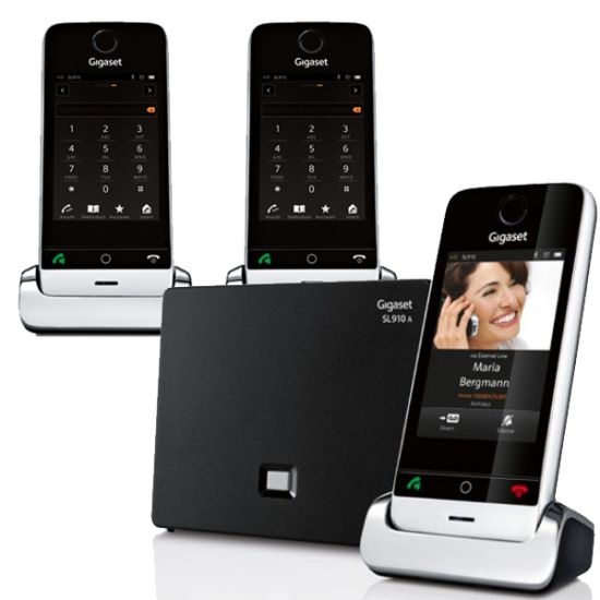 Le Gigaset SL910A Trio est un pack comprenant 3 téléphones sans fil haut de gamme avec écran tactile couleur haute résolution et répondeur intégré offrant une capacité d'enregistrement de 55 minutes.