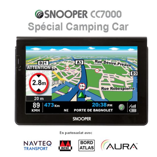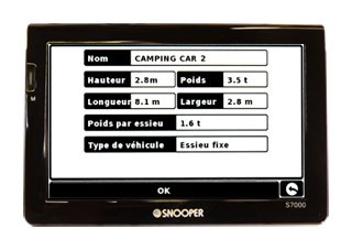 Equipé d'un large écran 17 cm de diagonale, le GPS Snooper CC7000 est idéal pour les chauffeurs de camping-car. A l'aide de son menu convivial, il vous suffit de saisir les informations nécessaires au calcul