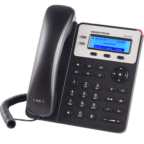 Le Grandstream GPX1625 est un téléphone IP SIP 2 lignes (2 comptes SIP, jusqu'à 2 appels simultanés), intégrant la technologie PoE (Power Over Ethernet) et proposant 2 touches de ligne et 3 touches contextuelles  programmables ainsi que la plupart des fonctionnalités d'appel essentielles : conférence, secret, mise en attente, transfert, réglage volume, etc...