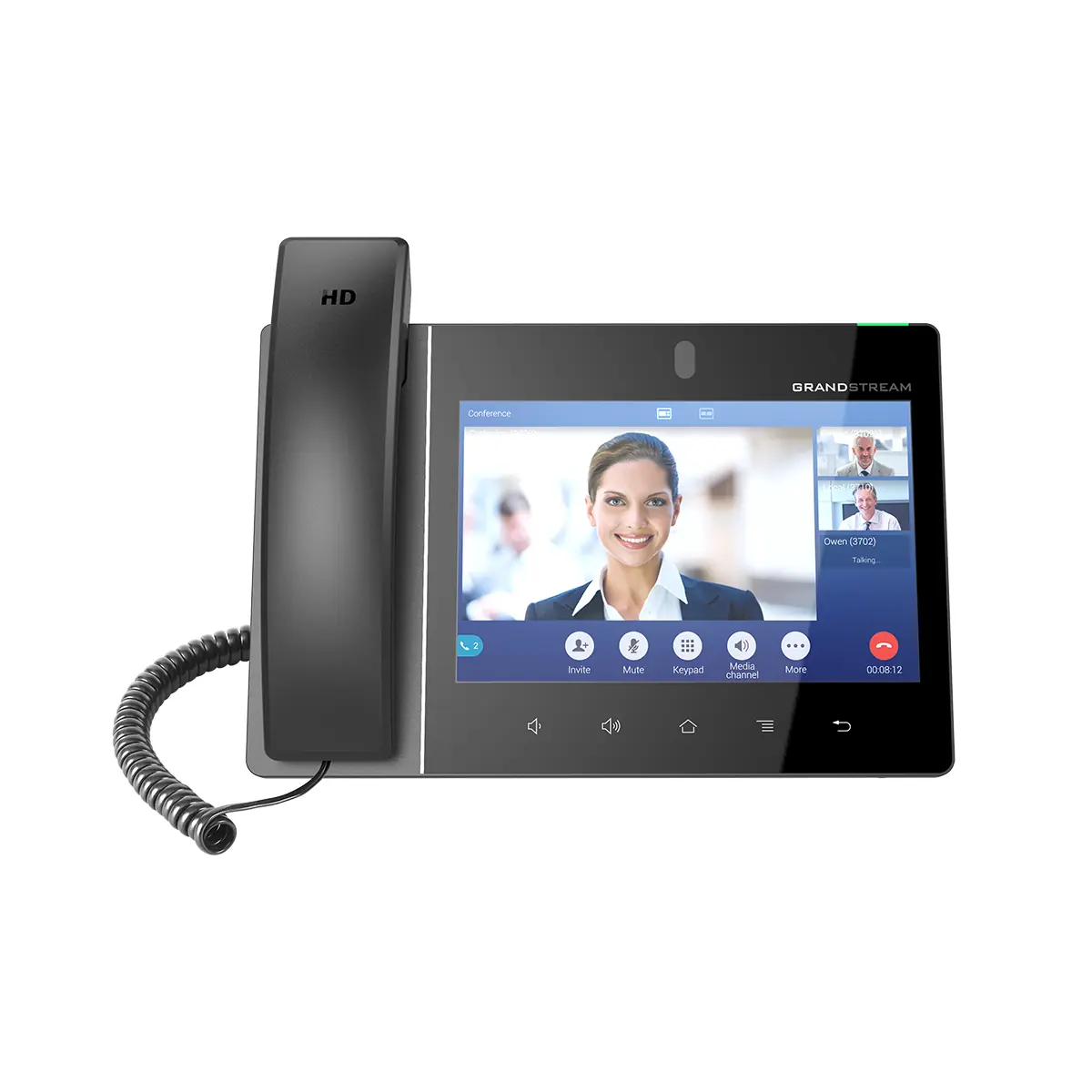 Ce visiophone IP fonctionne sous Android 7.x, et est doté d'un écran tactile de 8" avec caméra intégrée de 2 méga pixel. Ce téléphone IP Grandstream permet des conférences audio haute définition jusqu'à 7 participants et des conférences vidéo haute définition (1080p à 30 ims) à 3 participants.