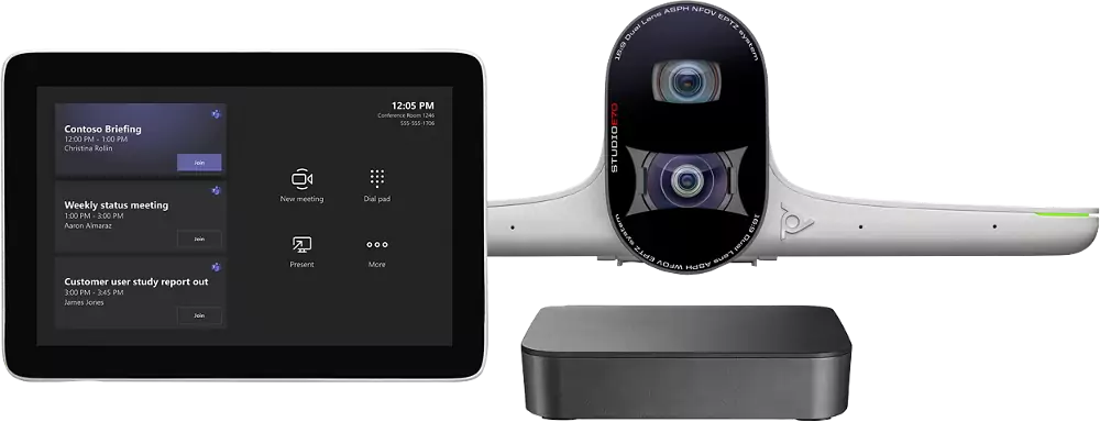 - Un accessoire pour rebasculer en USB : les avantages de la visioconférence autonome sont certains. Cependant, il est possible que vos collaborateurs aient parfois besoin de rebasculer en visioconférence USB. Dans ce cas, la réunion est lancée depuis l'ordinateur personnel d'un des participants et peut être effectuée sur n'importe quelle application installée sur le PC. Dans une salle de visioconférence, il convient de disposer d'un accessoire pour quitter le système de salle autonome et repasser en mode USB.