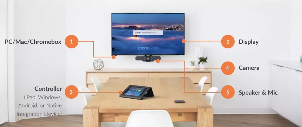 Une fois tout l'équipement installé, il ne vous reste plus qu’à profiter de votre Teams Room , Zoom room ou Google Meet Room d’un simple clic…