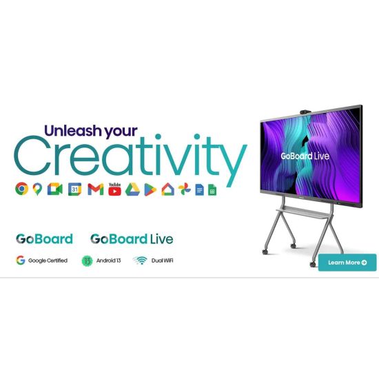 Le Hisense GoBoard Live est certifié Google. Il intègre dès le démarrage le navigateur web Google Chrome, la plateforme de livres numériques Google Play, le service de stockage en ligne Google Drive, ... Cet ENI a également été étudié pour convenir à l'éducation et inclut la plateforme d'apprentissage Google Classroom.