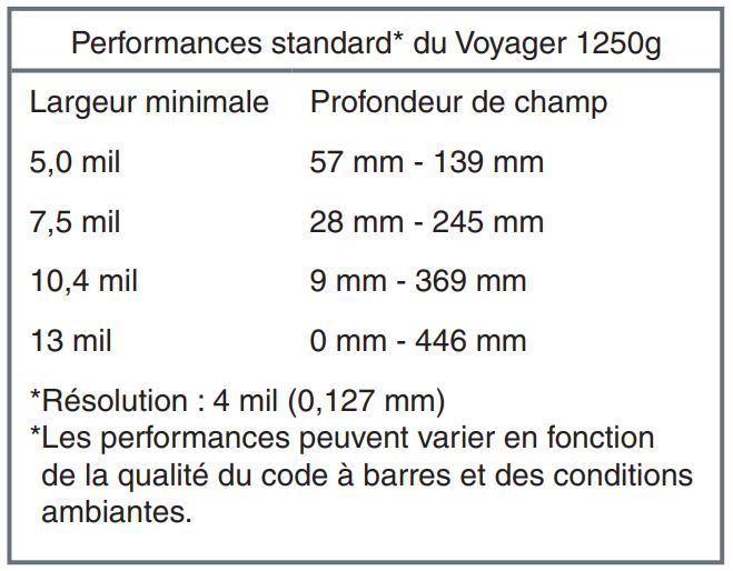 Dôté d'un capteur CCD performant, le Honeywell Voyager 1250g décode les symbologies allant de 5mil à 13mil. Pratique, sa tête de lecture peut scanner les codes barre jusqu'à 44.6cm