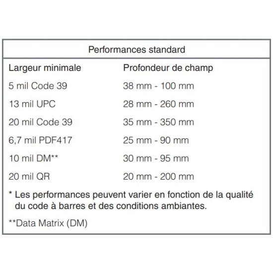 Pourvu d'un capteur CCD moderne et sensible, le scanner Honeywell Voyager 1400g peut lire des codes barres en 5mil jusque 13mil. La portée de sa tête de lecture peut aller jusqu'à 35cm.