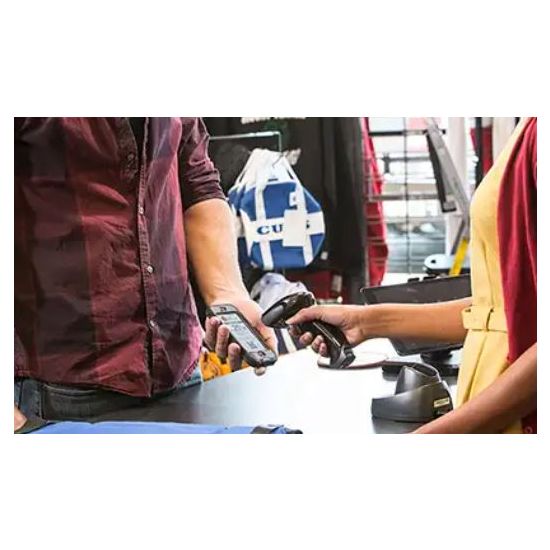 Lecteur de code barres 1D/2D, sans fil (bluetooth), kit complet avec support et câble de transfert.