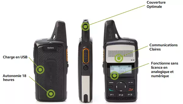 1 Les talkies walkies équipés de la nouvelle technologie numérique de transmission radio sont 100% compatibles avec les produits analogiques et permettent donc de conserver un parc existant et ses éventuels périphériques (antennes, relais, etc)