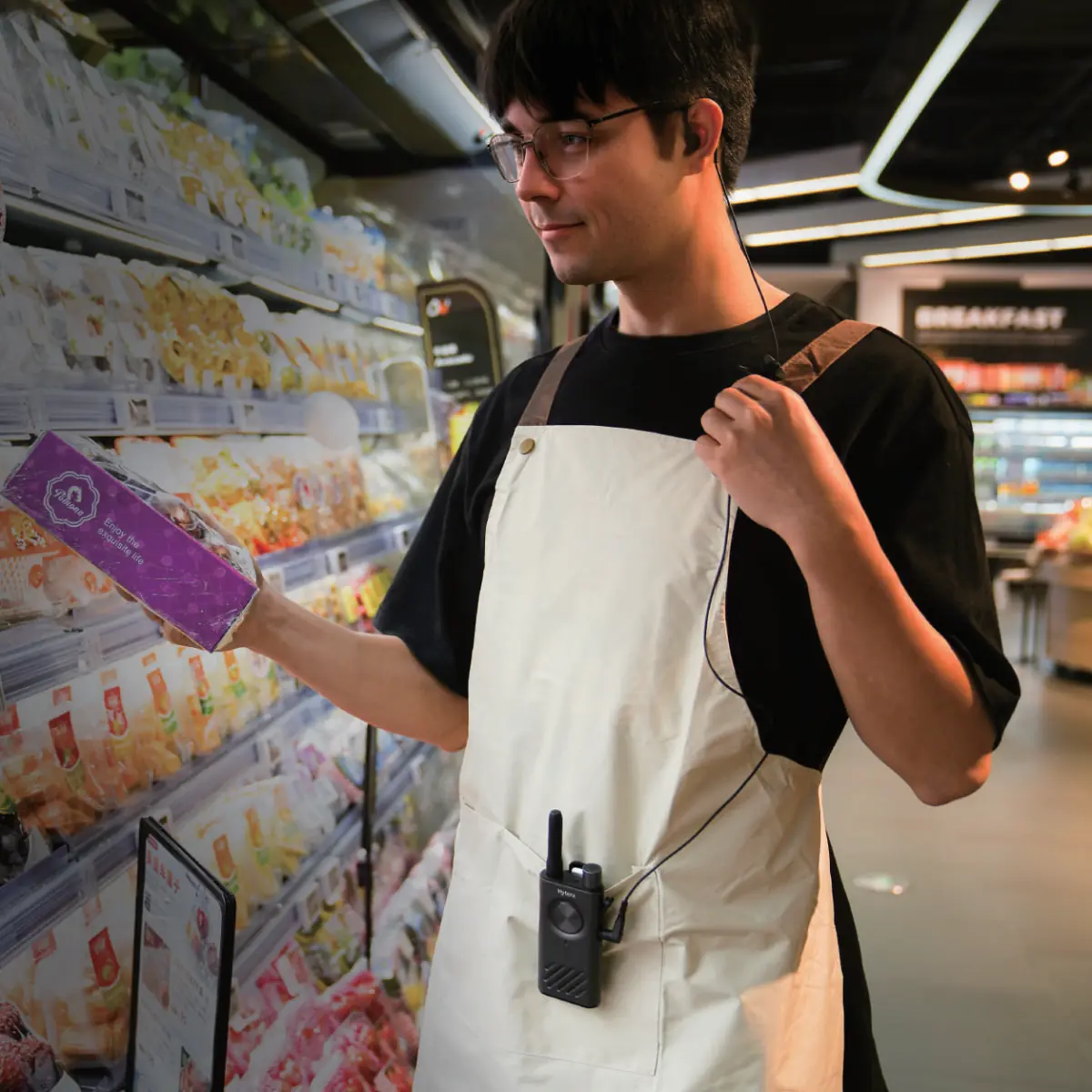 Grâce à son autonomie de 27 heures et les caractéristiques évoqués précédemment, il s'agit d'un talkie walkie taillé pour une utilisation en magasin, centre commercial, supermarché, hôtellerie, ...