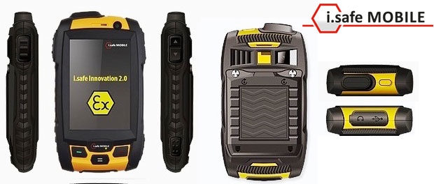 Téléphone mobile 3G Atex pour zones 1/21 fonctionnant sous Android 4 Jellybeam, le i.safe Innovation 2.0 est équipé de nombreuses fonctionnalités très utiles pour les travailleurs en zones dangereuses : une touche SOS en cas d'urgence, une lampe torche puissante, une touche Push To Talk, et un double appareil photo 5MP/0,3MP.