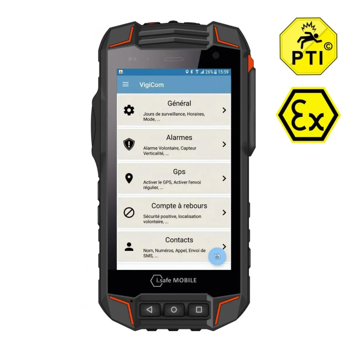 Ce pack complet vous offre une protection optimale pour les travailleurs isolés, combinant la robustesse du smartphone Isafe 530.1 ATEX Zone 1/21 et l'intelligence de l'application mobile SMART-DATI®. Idéal pour les environnements à risques, l'Isafe 530.1, conforme aux normes ATEX, est conçu pour résister aux conditions les plus extrêmes avec son écran Gorilla Glass renforcé, son étanchéité à l'eau et aux poussières (IP68) et sa certification militaire MIL-STD-810.