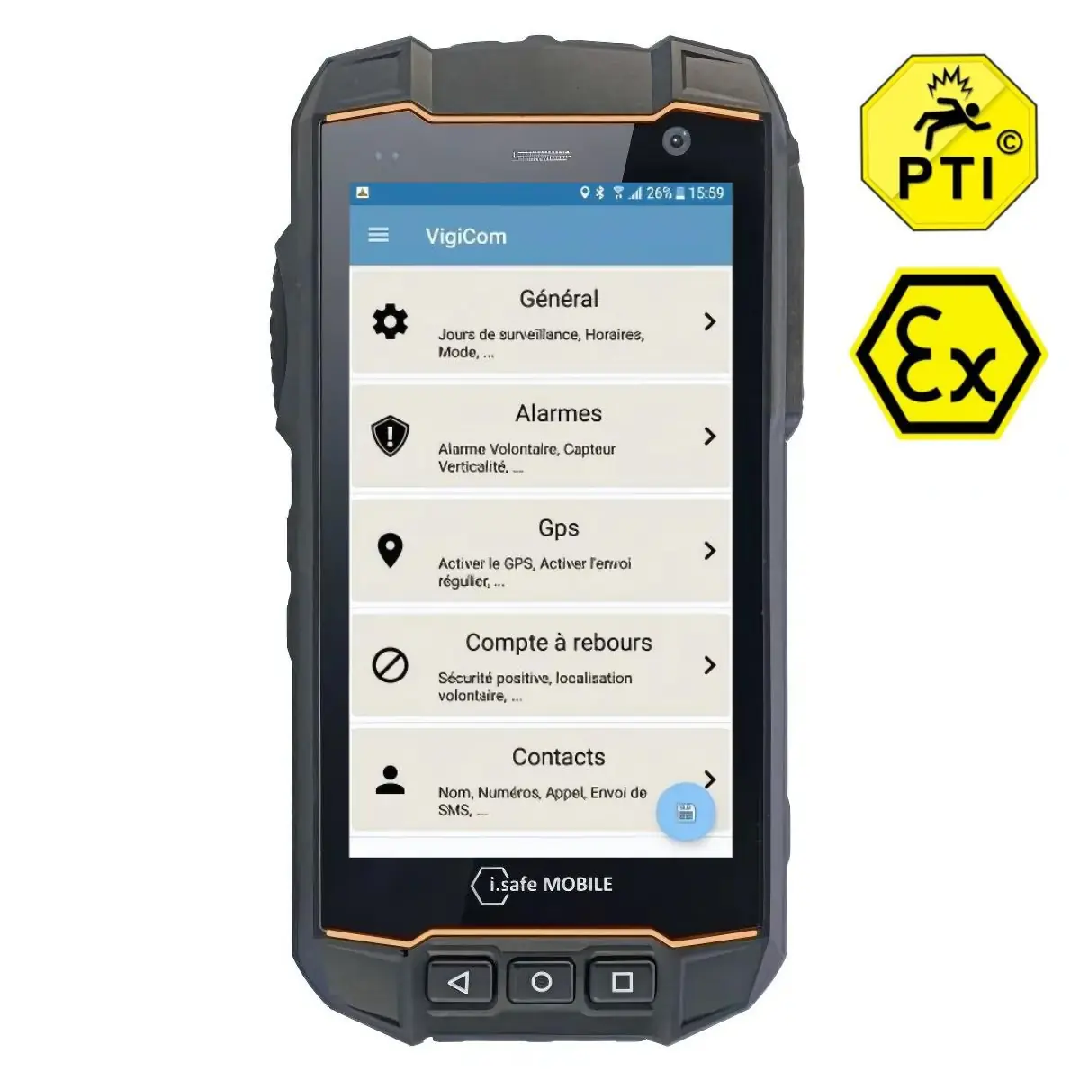 Ce pack allie la performance du smartphone Isafe 530.2 ATEX Zone 2/22 et la sécurité avancée de l'application SMART-DATI®, une solution idéale pour les professionnels évoluant dans des environnements dangereux. Le smartphone Isafe 530.2 est conçu pour offrir une protection exceptionnelle grâce à sa résistance aux chocs, à l'eau et à la poussière (certification IP68), ainsi que sa conformité aux standards militaires (MIL-STD-810G). Son écran tactile de 4,5 pouces et sa batterie longue durée de 3600 mAh assurent une utilisation optimale même dans des conditions extrêmes.