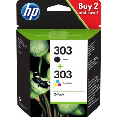 HP Pack de 2 cartouches authentiques d'encre noire/trois - 303