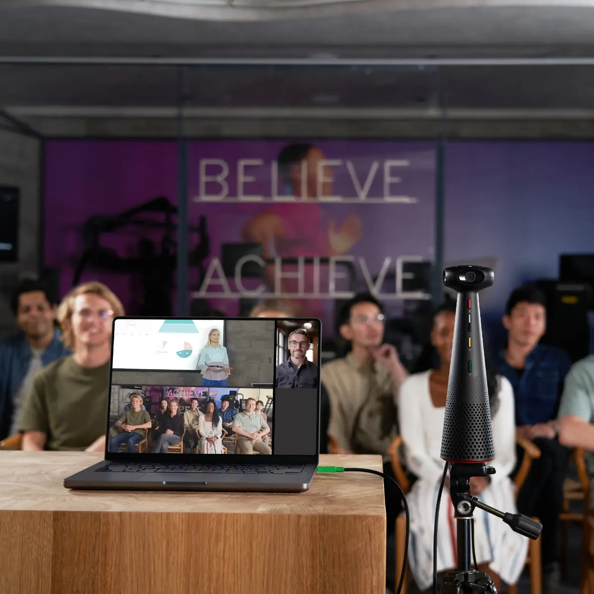 Avec un desing compact et facile à prendre en main, la Ipevo Totem 360 se transporte très aisément d'une pièce à l'autre. Elle est plug & play, alimentez la caméra sur secteur, branchez-la en USB sur votre ordinateur puis lancez la réunion sur la plateforme de votre choix !