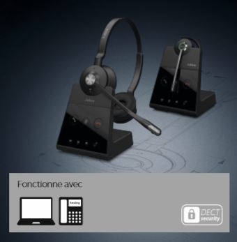 Ce casque sans fil Jabra bénéficie d'une double connectivité, vous pouvez donc l'appairer à votre PC / MAC ou à un téléphone fixe filaire (en complément du cordon EHS permettant le décrochage depuis l'oreillette).