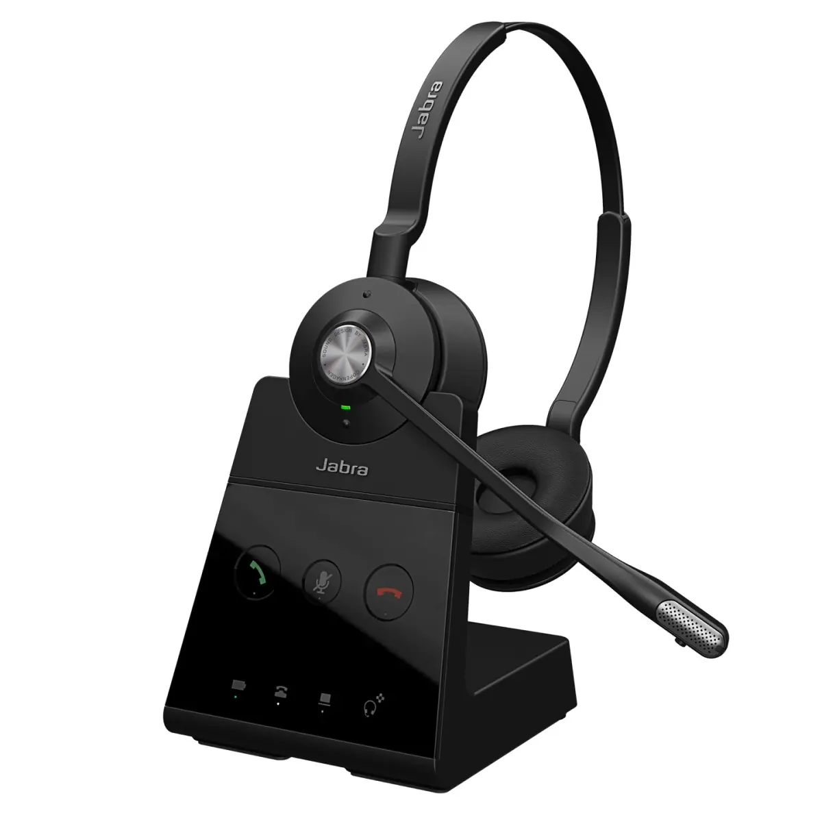 Successeur du Jabra 9450, le micro-casque sans fil Engage 65 est pourvu d'une double connectivité vous permettant de l'utiliser sur PC / Mac et sur téléphone fixe filaire (à l'aide du cordon EHS adapté pour le décrochage des appels depuis l'oreillette).