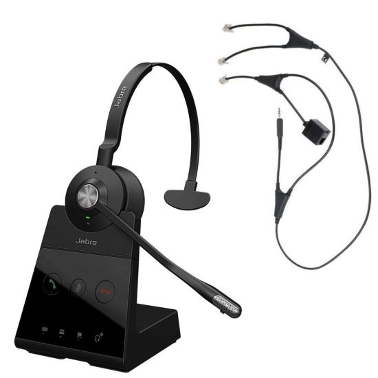 Pack prêt à l'emploi composé d'un micro casque sans fil Jabra Engage 65 et d'un cordon décroché électronique afin de pouvoir le connecter sur les postes téléphoniques Alcatel.