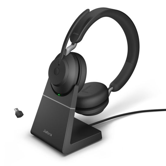 Evolution Premium de la gamme bluetooth Jabra Evolve, l'evolve 2 65 est un casque sans fil doté de 2 écouteurs et offrant une connexion sans fil bluetooth grâce au Link 380 BT.
