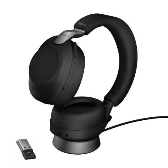 Description du Jabra Evolve2 85 UC avec base de chargement (avec dongle USB)