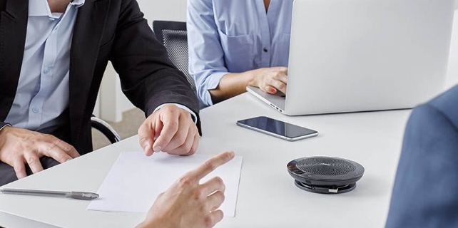 Module d'audioconférence professionnel, compatible avec un ordinateur, une tablette ou un mobile, par une connexion USB ou Bluetooth, pour passer vos appels téléphoniques amplifiés de manière mobile.