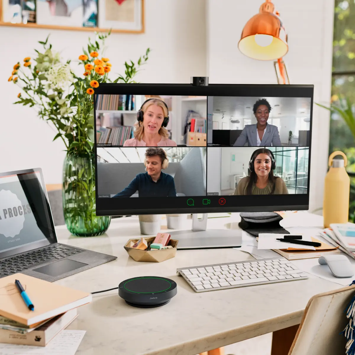 Speakerphone Jabra nouvelle génération certifié Microsoft Teams pour vos petites salles de réunion ou en télétravail.