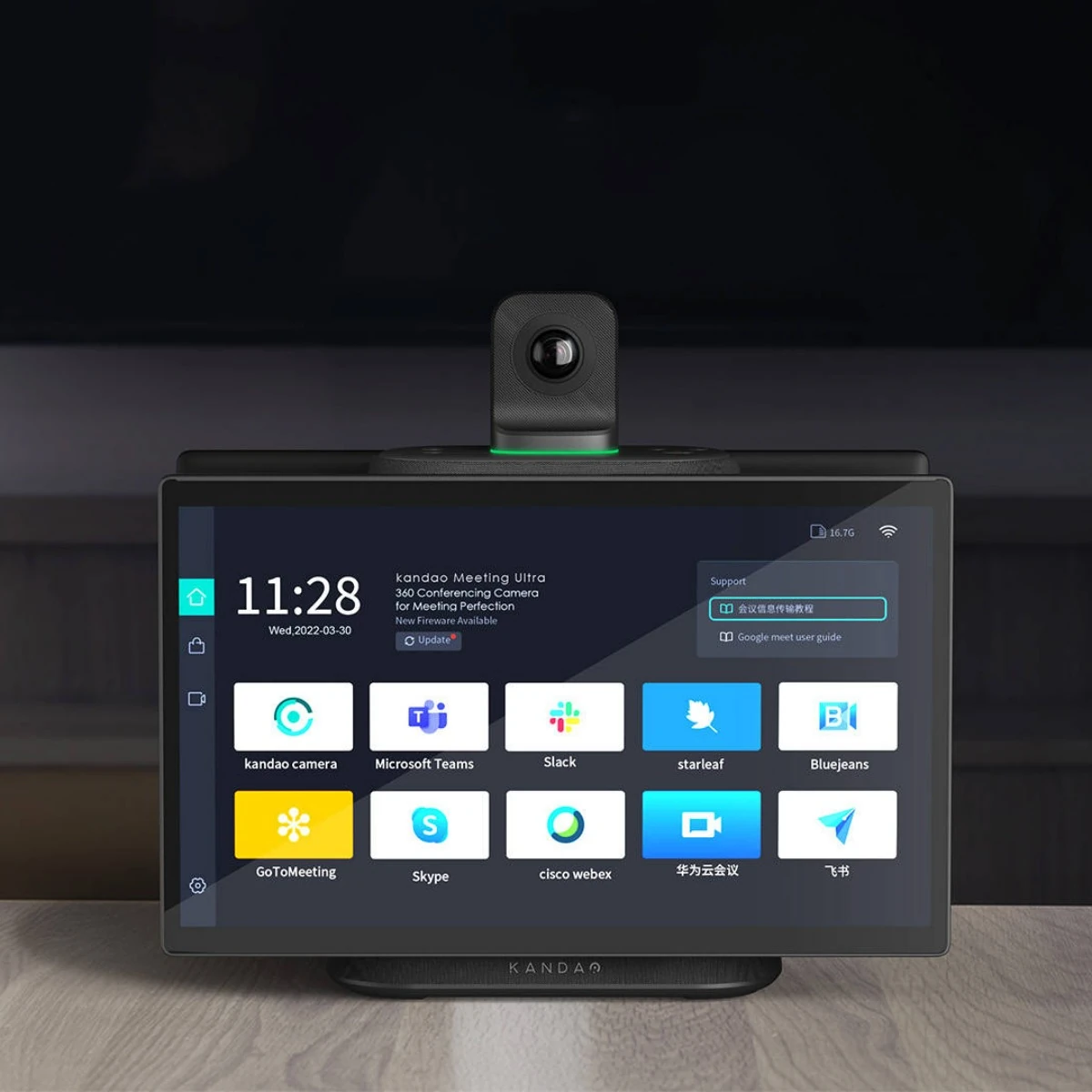 Découvrez la dernière nouveauté de Kandao, la caméra Meeting Ultra avec écrans tactiles inclus. Idéal pour les visioconférences, ce dispositif pourra être placé en permanence au milieu d'une salle de réunion, ou être transporté chez un client.