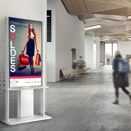 Diffusez votre contenu à hauteur du regard : avec un totem de près de 2m de haut, vous capterez l’attention de plus loin.