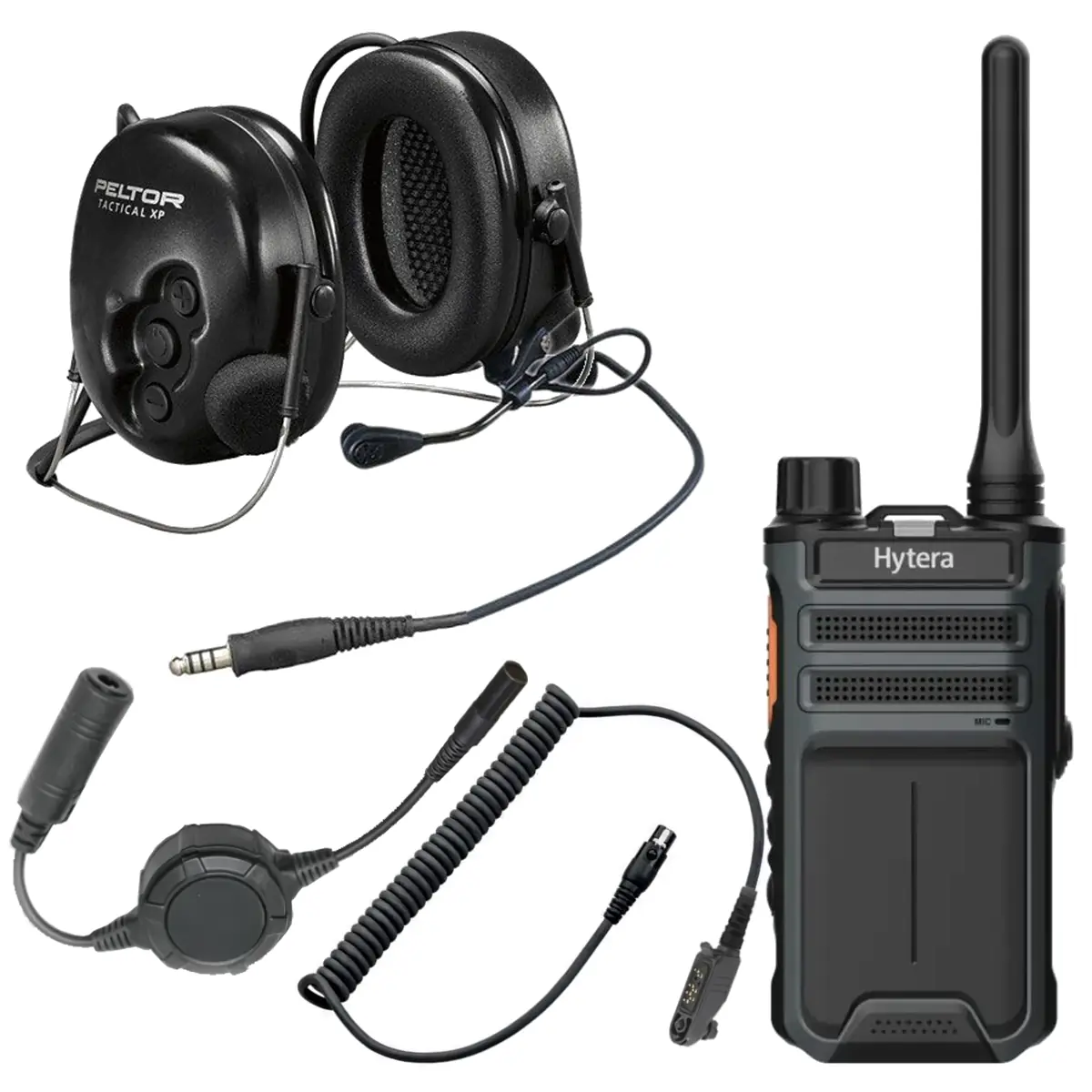 Le kit casque antibruit et talkie-walkie sans licence PMR446 est un kit complet comprenant un casque antibruit avec modulation sonore 3M Peltor Tactical XP avec perche microphone et câble de sortie J11 afin d'y connecter un bouton PTT et un talkie walkie. Ce casque antibruit possède une attache en serre nuque afin de porter votre casque sur vos oreilles avec un casque militaire ou un chapeau. Il possède une réduction de bruit de 31 dB afin de protéger votre système auditif des bruits à décibels élevés.