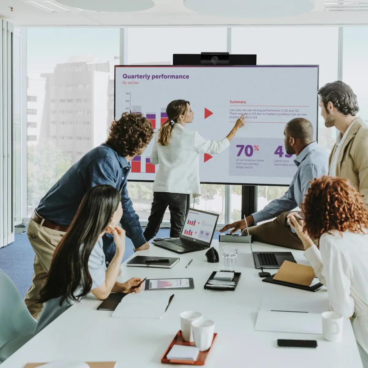 Cet ensemble camera viso avec enceintes intégrées correspond complètement à nos attentes, le son est parafait et la qualité vidéo également. Le système de zoom automatique sur la personne qui parle est également très appréciable