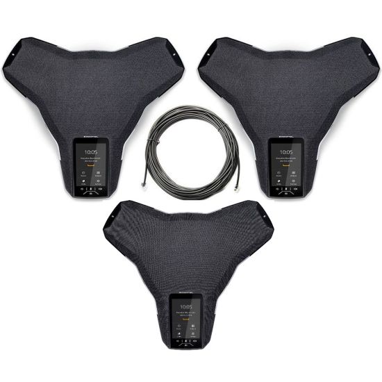 Le Kit Konftel 800 est un kit comprenant 3 pieuvres de conférences Konftel. Grâce au chaînage possible de ces appareils, la surface audio est alors considérablement décuplée pour vous permettre d’effectuer des réunions performantes avec 20 participants. Chaîner vos pieuvres de conférences à l’aide d’un câble pour une couverture