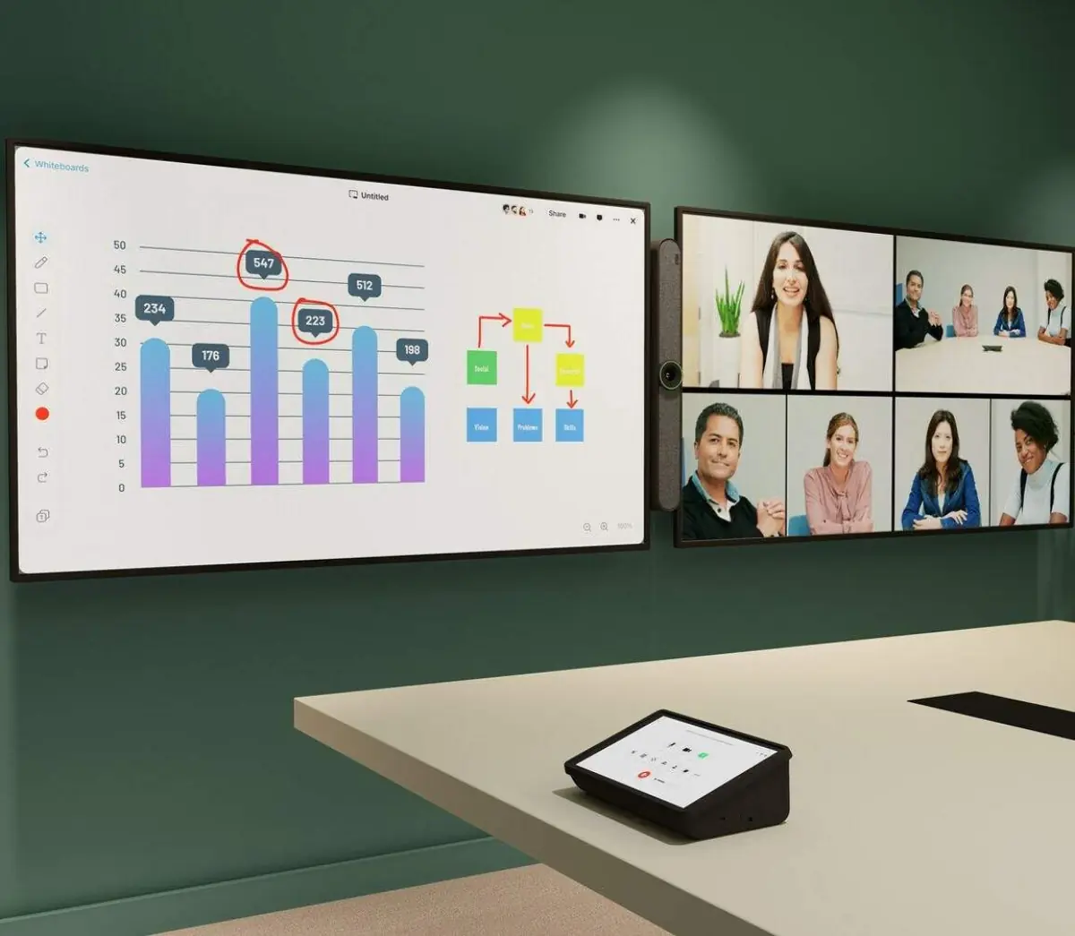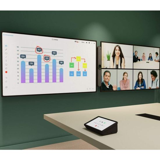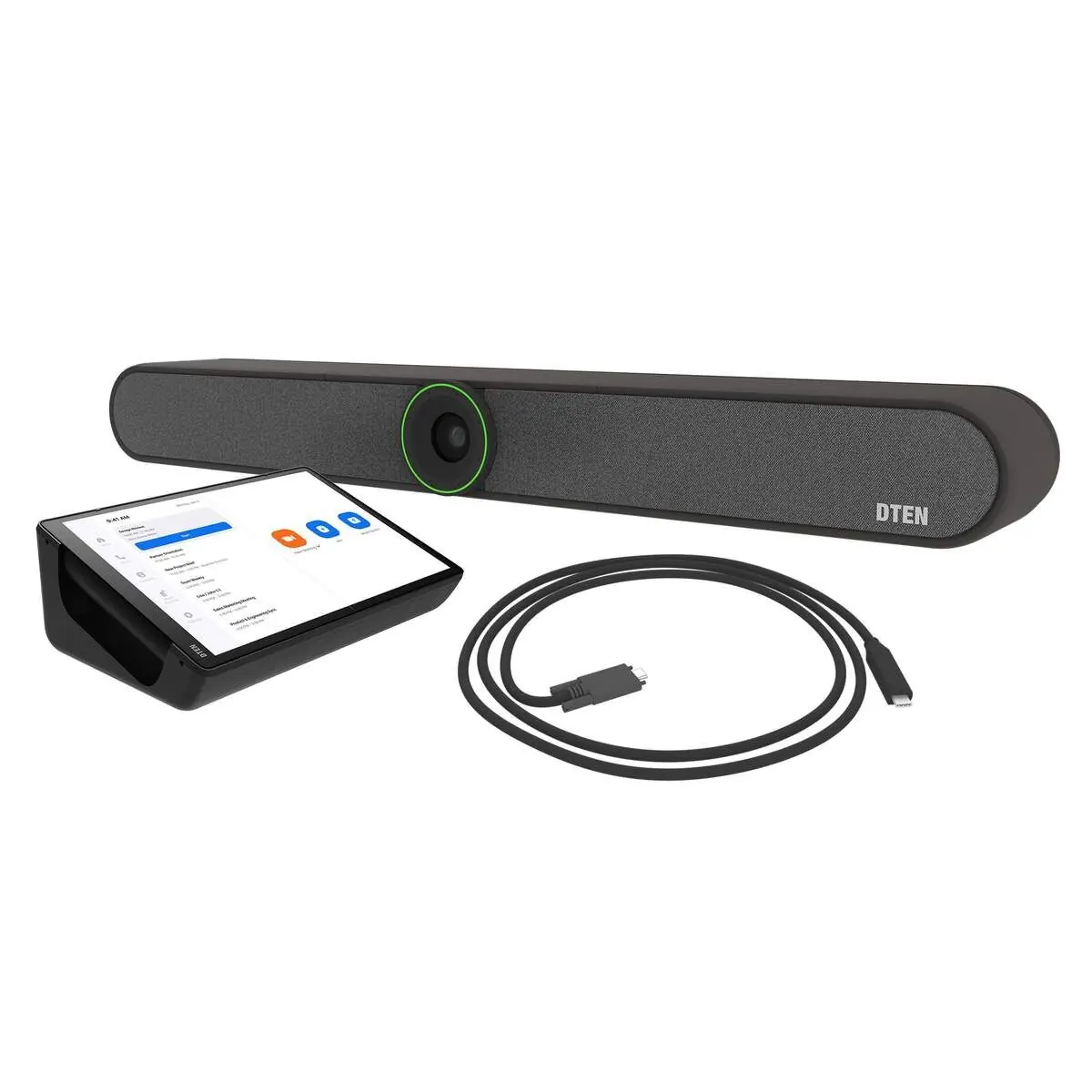Pour équiper votre salle dé réunion, optez pour ce kit de visioconférence Dten x Samsung. Composé d'une barre de visioconférence Dten Bar, d'une tablette de contrôle Dten Mate, de 2 écrans Samsung avec supports muraux orientables, ce kit est pensé pour les petites salles de réunion dédiés à la visioconférence autonome Zoom ou Microsoft Teams. Pour rejoindre vos réunions sur une de ces deux plateformes, vous ne serez pas dans l'obligation d'utiliser votre ordinateur portable. Les réunions sont affichées sur le calendrier de la tablette et sont rejointes en un clic. La Dten Mate, une tablette tactile de 10,1 pouces alimentée en PoE, permet également l'ajustement de différents paramètres tels que le réglage de la caméra ou la gestion des participants.