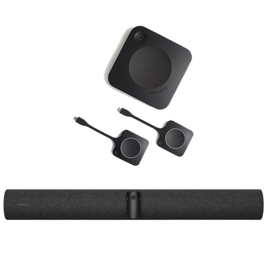 Equipez votre salle de réunion en un clin d'oeil grâce à la Jabra PanaCast 50 et au système de partage d'écran sans fil ClickShare CX-30 de Barco ! Tout est inclus, il ne vous reste plus qu'à brancher votre équipement à l'écran de votre salle de réunion et à lancer une visioconférence sur la plateforme de votre choix (Zoom, Microsoft Teams, Google Meet, etc.).