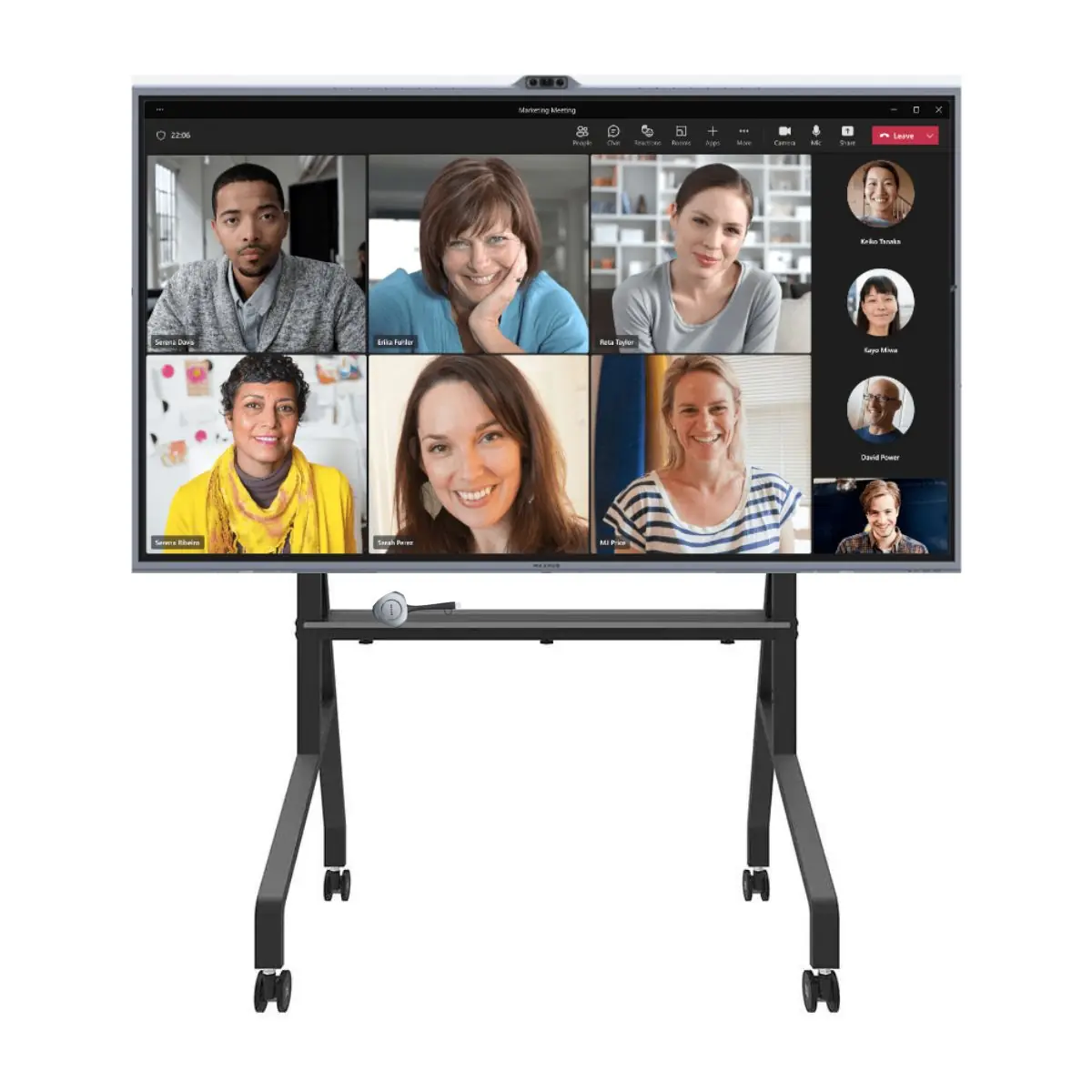 Cet écran est livré avec un pied roulant permettant une installation facile. Vous pourrez ainsi le déplacer dans vos espaces de réunions, à votre guise. L’aspect visuel du support peut varier selon les disponibilités. Pour toute demande spécifique (hauteur du pied, base à faible encombrement, etc.), merci de contacter notre service commercial.