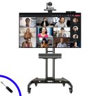 Ce pack de visioconférence, mobile et pratique, s'intègre parfaitement dans une salle de réunion de 10 personnes. Il contient :