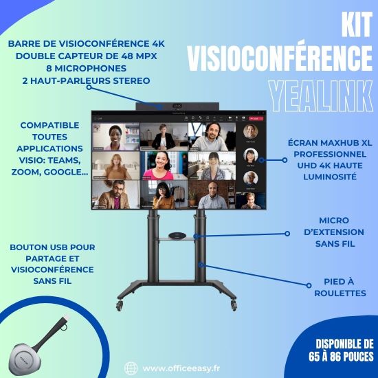Description du Kit Visioconférence Yealink S40 Sans Fil + Écran Maxhub XL - Pied Roulant