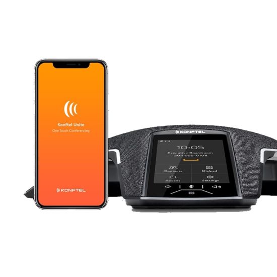 Le Konftel 800 peut également être géré avec son smartphone via l'application Konftel Unite pour démarrez ou rejoindre une conférence en un seul clic.
