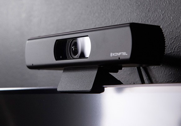 Facile d'installation, la caméra Konftel CAM20 offre une résolution Ultra Haute Définition 4K et ajuste automatiquement l'image pour qu'elle soit toujours claire, même dans une salle avec une faible luminosité.