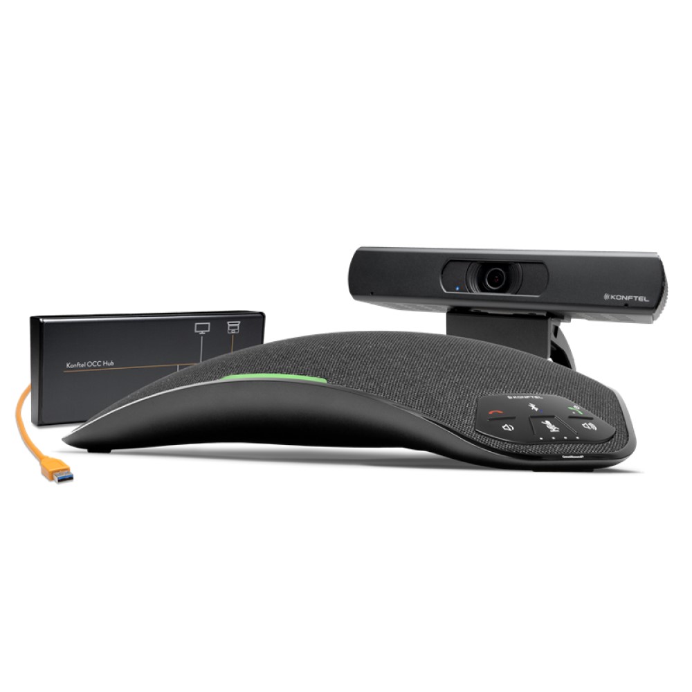 Le pack Konftel C2070 se compose de l'ensemble du matériel nécessaire pour équiper une petite salle de réunion, à savoir une caméra UDH 4K, une speakerphone Bluetooth et un Hub USB et HDMI.