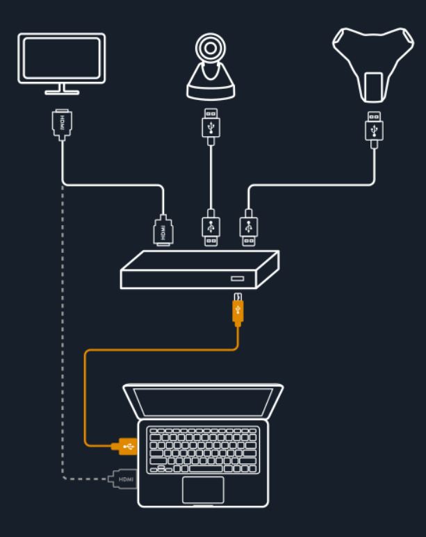 Les connectivités du Hub sont en USB pour la connexion de la caméra et du téléphone et en HDMI pour la connexion de l'écran.