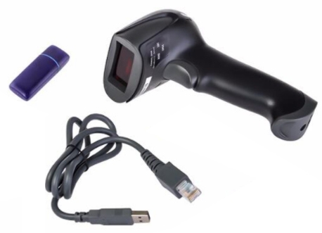 Lecteur de code barre 1D sans fil (bluetooth), livré avec adaptateur USB-A et cable de rechargement
