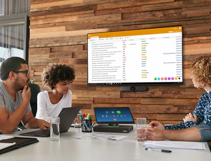 Idéal pour les petites et moyennes salles, le Lenovo Thinksmart Hub peut s'adapter à beaucoup de tailles de salles grâce à aux accessoires personnalisés.