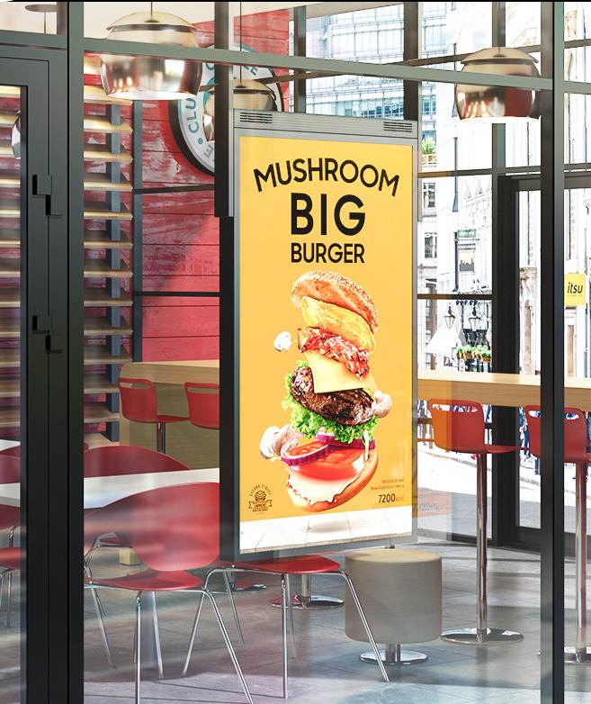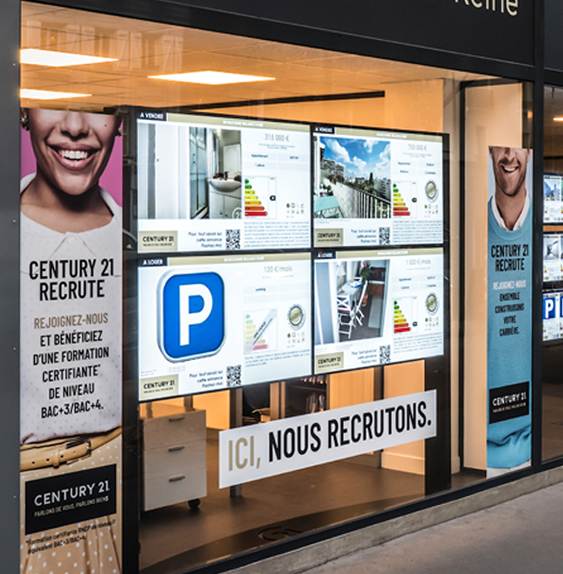 En effet l’écran doit absolument avoir une luminosité puissante pour que le visuel garde toute sa richesse de couleurs à travers une vitrine.