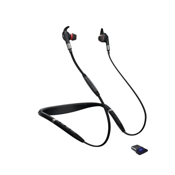 Spécialement développés pour un usage professionnel, les écouteurs Evolve 75e optimisent l’UX avec un design et une ergonomie personnalisables, utilisant les ailettes EarWings et les embouts EarGels. Le confort d’utilisation en usage soutenu est largement augmenté, faisant qu’on finit par oublier qu’on porte des écouteurs. Pour garantir une expérience parfaite, il associe une réduction sonore passive et une réduction de bruit active (type technologie ANC). Cette réduction de bruit hybride sur 4 micros diminue l’environnement sonore en moyenne de 27 décibels. Ce modèle Evolve 75e Jabra propose en plus une autonomie d'utilisation de 14 heures, obtenue après recharge rapide de 2 heures. Son port à la nuque est associé par ailleurs à un ingénieux système de notifications silencieuses par vibrations.