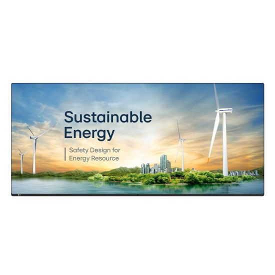 Ce dernier a été optimisé pour les environnements professionnels dédiés à la visioconférence. Cet écran possède un format 21/9. Il est ainsi 33% plus étendu qu'un écran classique 16/9ème que l’on retrouve habituellement en salle de réunion. Il répond à la demande des entreprises qui souhaitent des surfaces plus larges pour diffuser des contenus, et optent généralement pour un second écran. Dans cette configuration, l’installation est plus simple et rapide puisque vous n’avez qu’un seul écran à mettre en place !