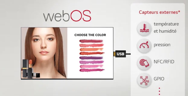 L’écran LG 55UL3J possède un lecteur de contenu intégré avec une mémoire de 8Go en interne. Une fois le contenu transféré par USB ou en réseau, l’écran est autonome et peut lire votre playlist.