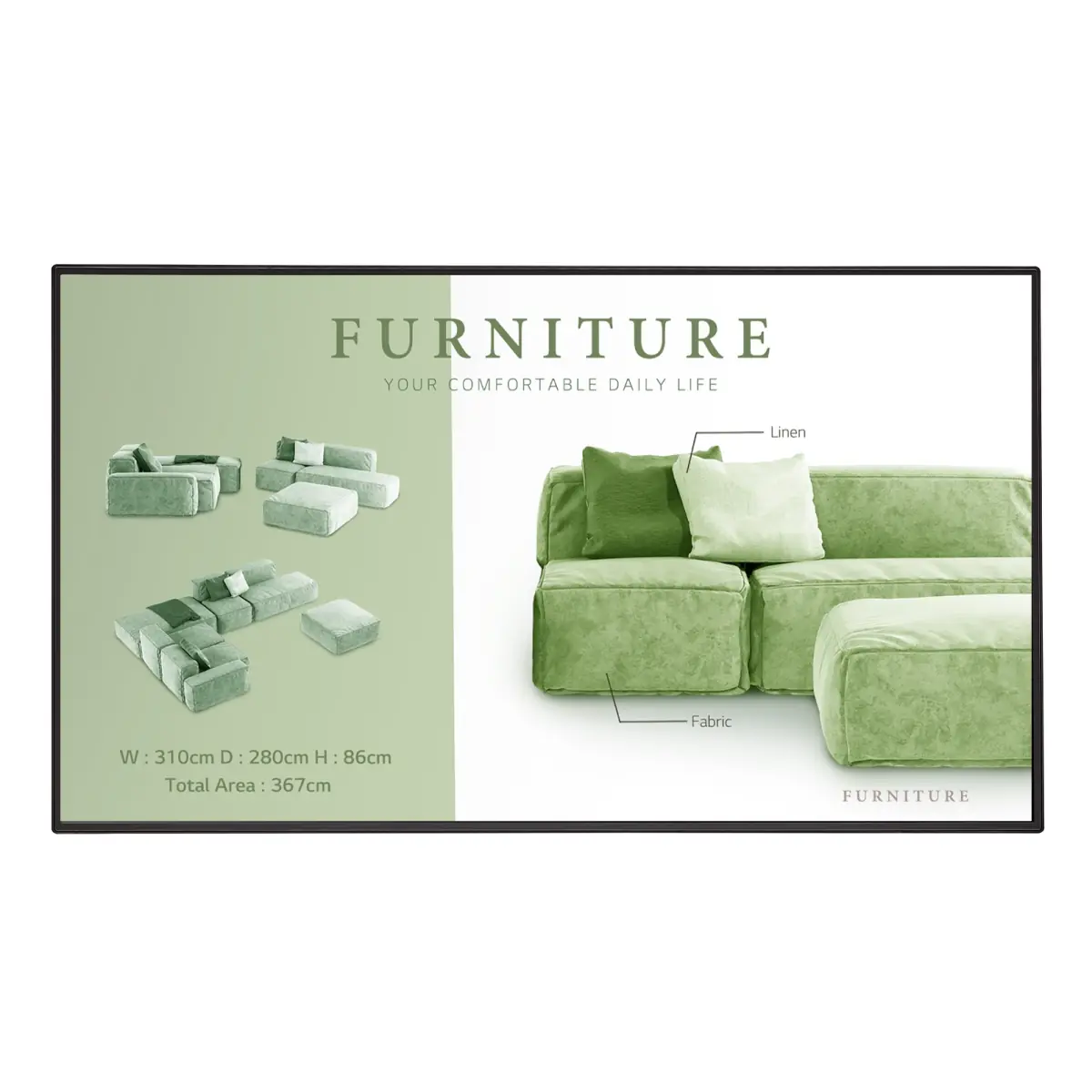 La luminosité de 500 candelas/m² est parfaite pour un usage en intérieur. Grâce à l'antireflet de 28%, bénéficiez d'une belle lisibilité, même dans les environnements ouverts.