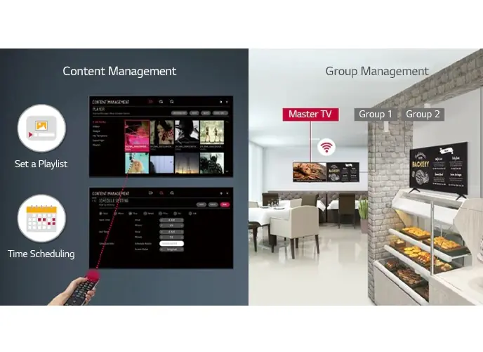 Résolution UHD 4K, couleurs éclatantes et dalle lumineuse 330 cd/m² prévu pour une durée d’allumage étendue à 16 heures par jour 7 jours sur 7 : la qualité LG adaptée aux usages pro, mieux qu’une TV grand public.