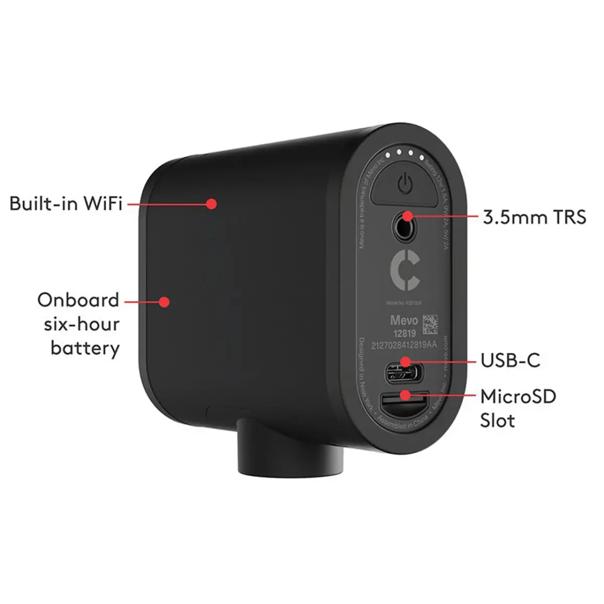 • Audio : La Logitech Mevo Start intègre 3 microphones MEMS. Un microphone externe peut être connecté via une prise jack 3,5 mm.