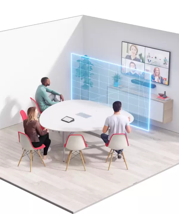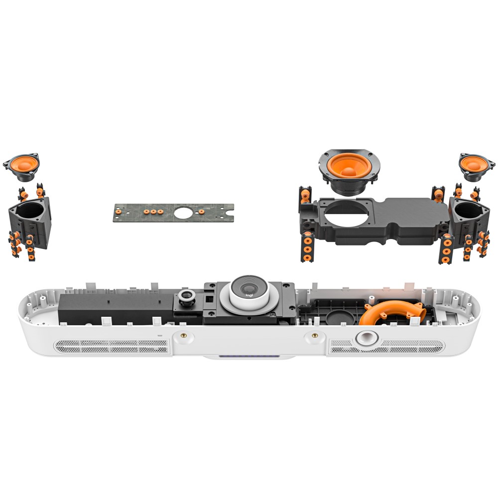 Outil tout-en-un pour les petites salles de visioconférence "huddle room", elle donne accès, en une seule connexion, à une caméra PTZ 4K, 3 enceintes et 6 micros omnidirectionnels avec annulation des bruits de fond.